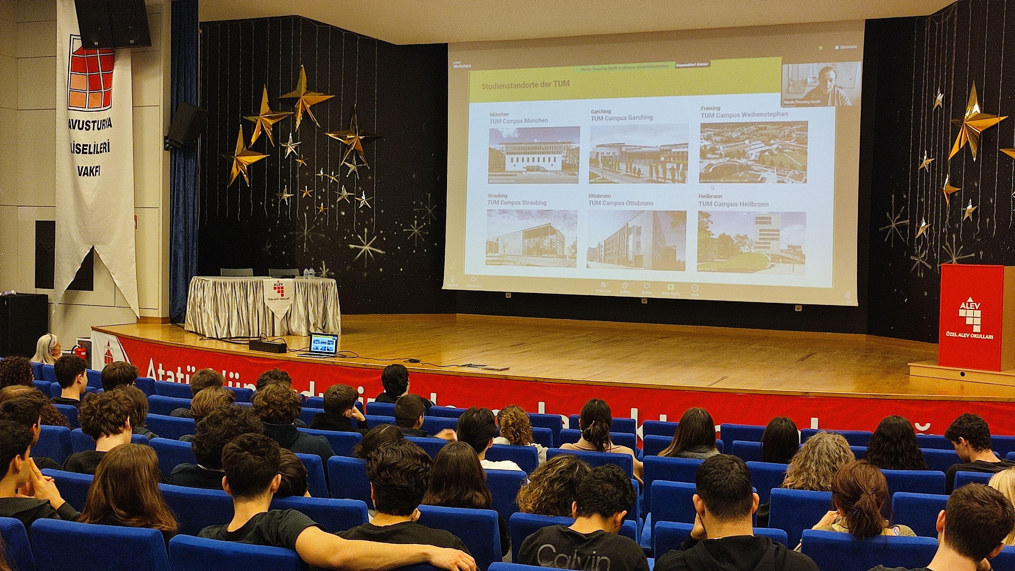 11. ve 12. sınıf öğrencilerimiz, Almanya’nın önde gelen üniversitelerinden biri olan Münih Teknik Üniversitesi (TUM) için düzenlenen çevrim içi tanıtım sunumuna katıldı. Sunum, üniversitenin Merkezi Öğrenci Danışmanlığı biriminde görev yapan Nicola Theuring tarafından gerçekleştirildi. Etkinlikte öğrencilerimiz; TUM’un akademik programları, Almanya’da üniversite eğitimi ve başvuru süreçleri, uluslararası öğrenciler için sunulan olanaklar ile kampüs yaşamı ve kariyer fırsatları hakkında bilgi edinme fırsatı buldu. Bu değerli katkısı için konuğumuza teşekkür ediyor, öğrencilerimizin uluslararası üniversiteleri yakından tanımalarını sağlayan etkinliklere devam ediyoruz.