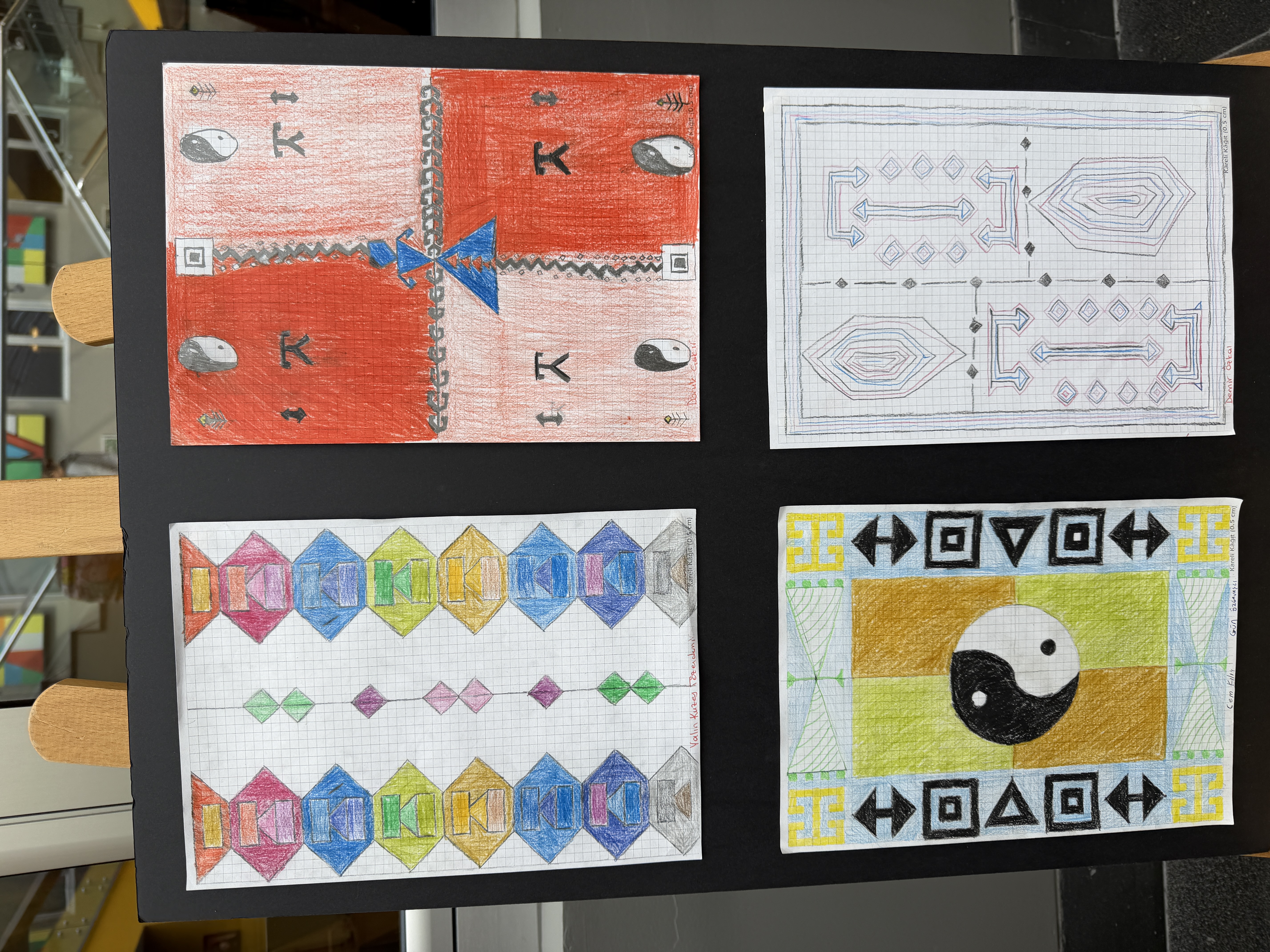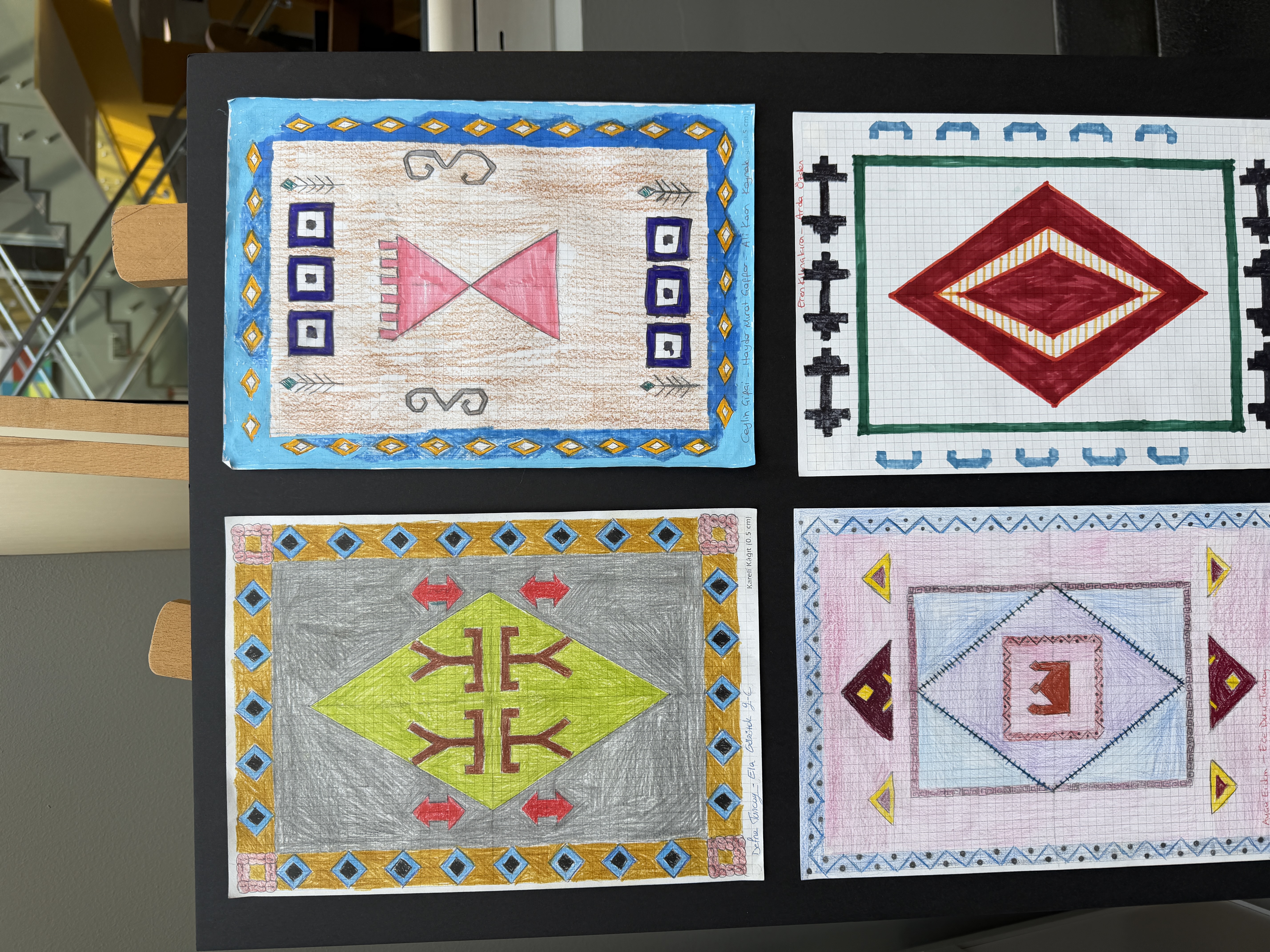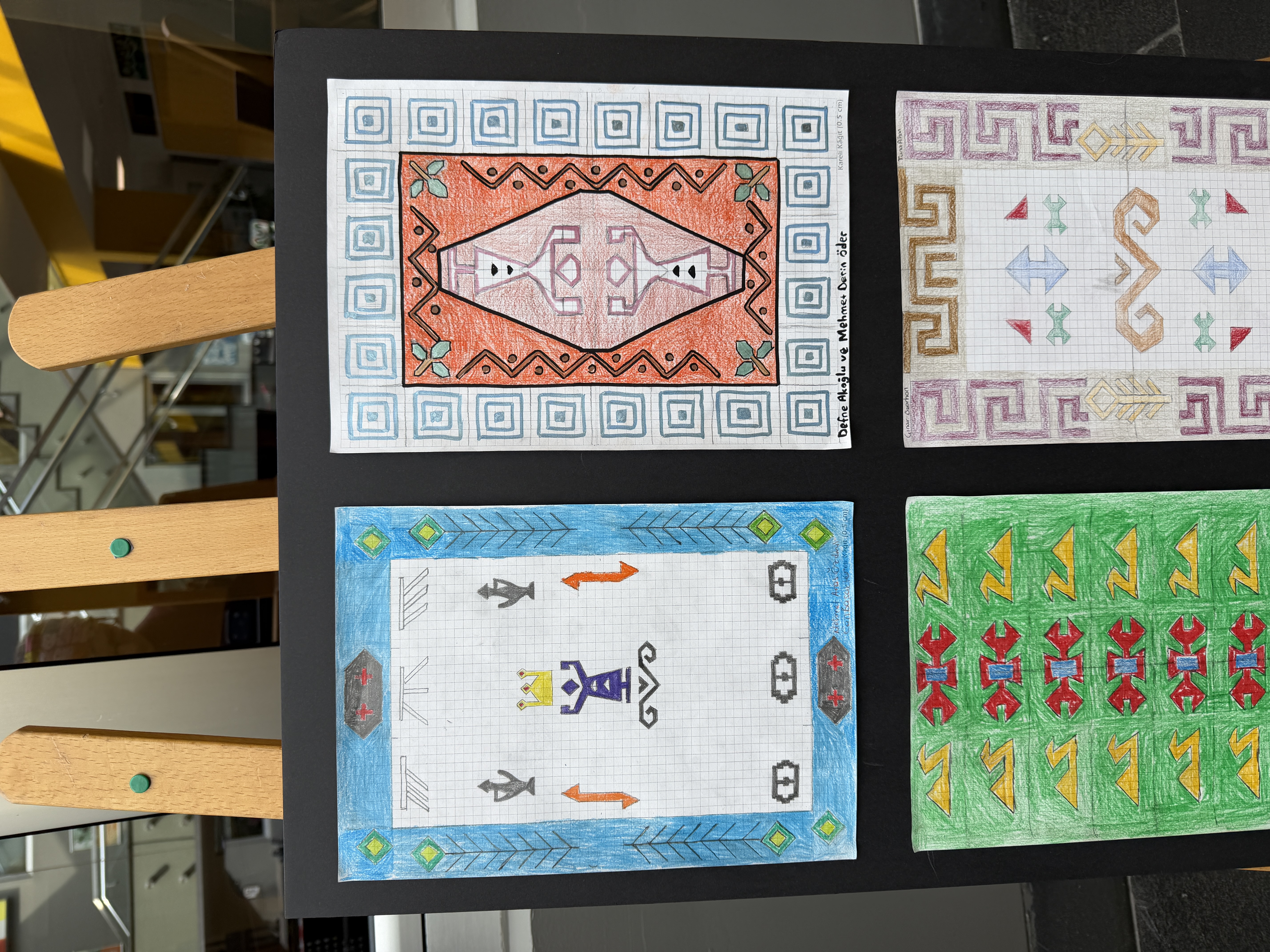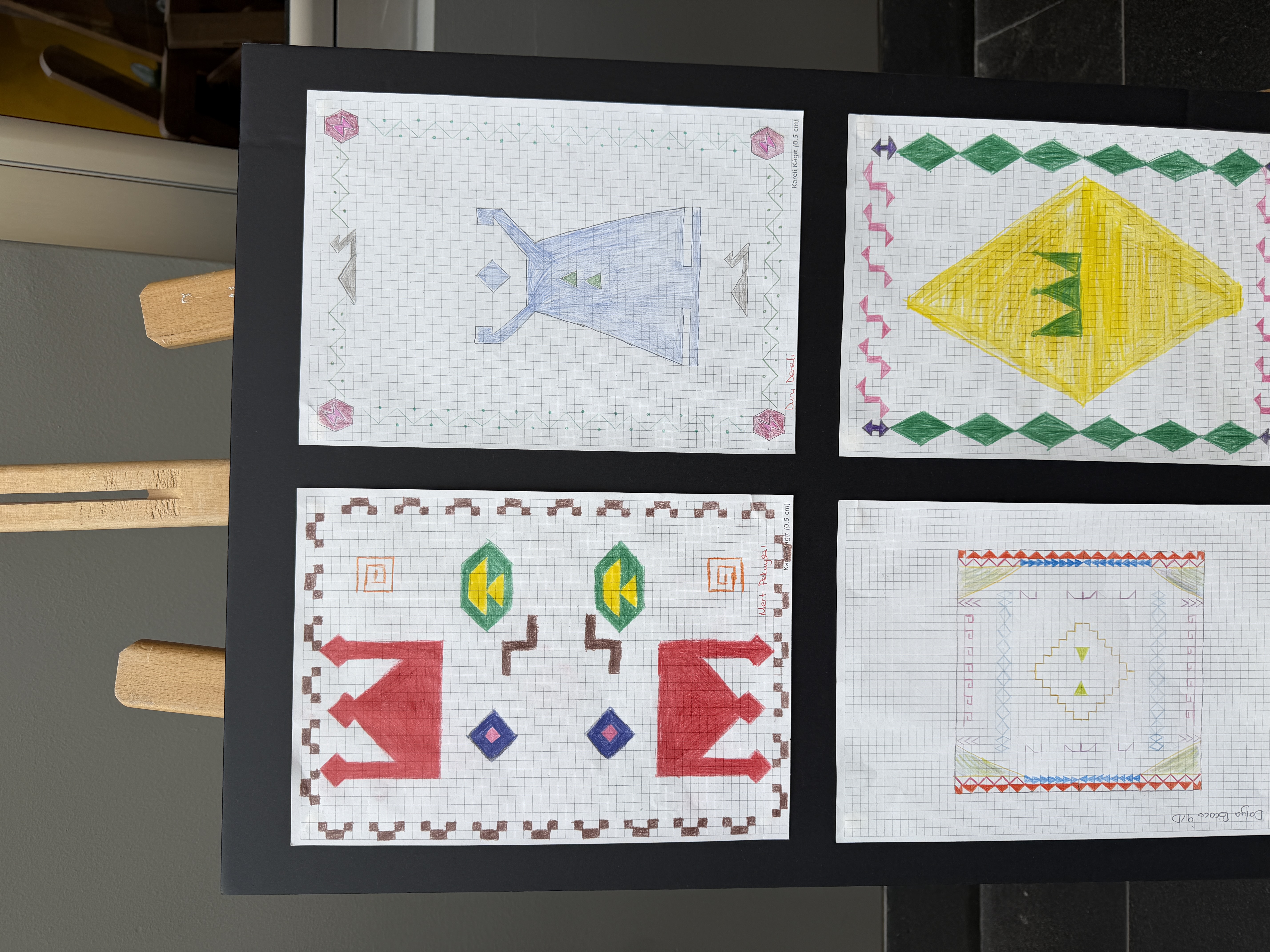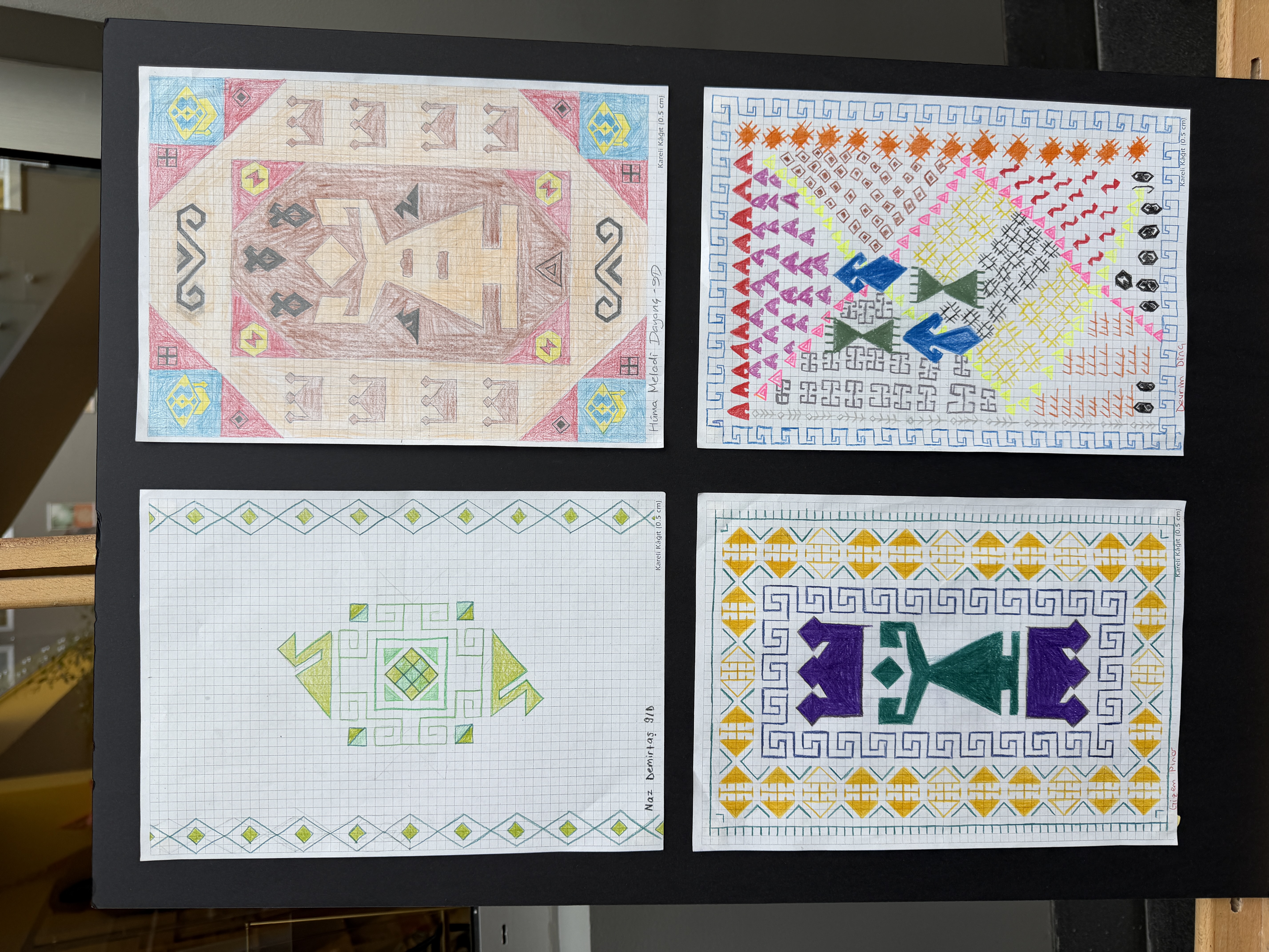 Anlässlich des Weltfrauentags interpretierten unsere Schüler:innen der 9. Klassen vom 2. bis 6. März im Rahmen einer Veranstaltung die traditionellen Teppichmotive Anatoliens neu. Ausgehend von der inspirierenden Bewegung „Cache Istanbul“ lag der Fokus dabei auf Mathematik und Geschlechtergerechtigkeit. Durch den Einsatz geometrischer Transformationen wandelten sie fest verankerte Symbole um. So verbanden sie das Motiv der „Fruchtbarkeit“ mit Bildung, die Kindererziehung mit der Entfaltung von Potenzial und den „Wunsch nach Ehe“ mit Mut. Dadurch wurde jede Spiegelung und jede Verschiebung zu einem Schritt in Richtung einer gerechteren Zukunft. Während diese bedeutungsvollen Entwürfe in unserer Schule ausgestellt wurden, trugen unsere Schüler:innen mit ihren Erläuterungen zur Bewusstseinsbildung bei und wurden Teil dieser gesellschaftlichen Veränderungsbewegung.